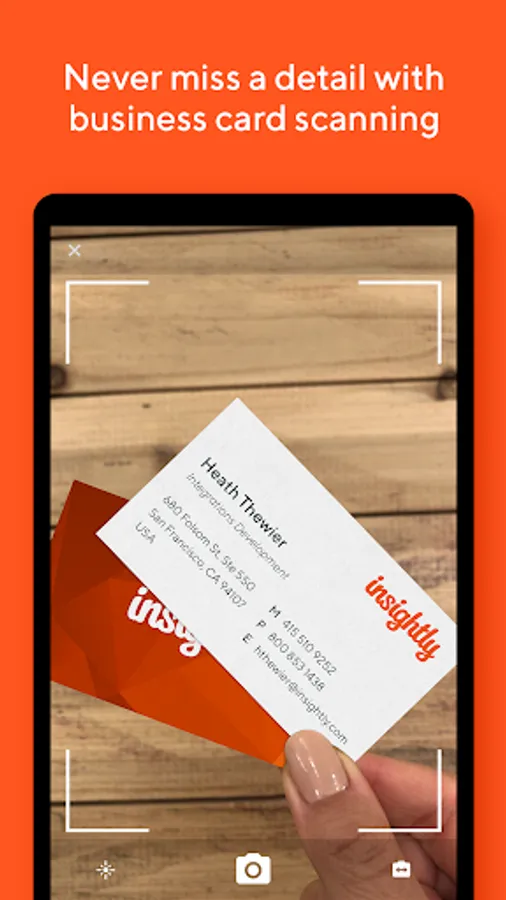 * Add new contacts on the fly, scan business cards or import them from your device’s address book
