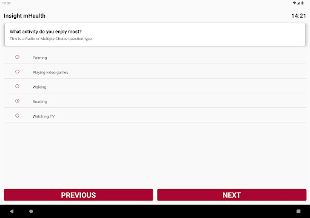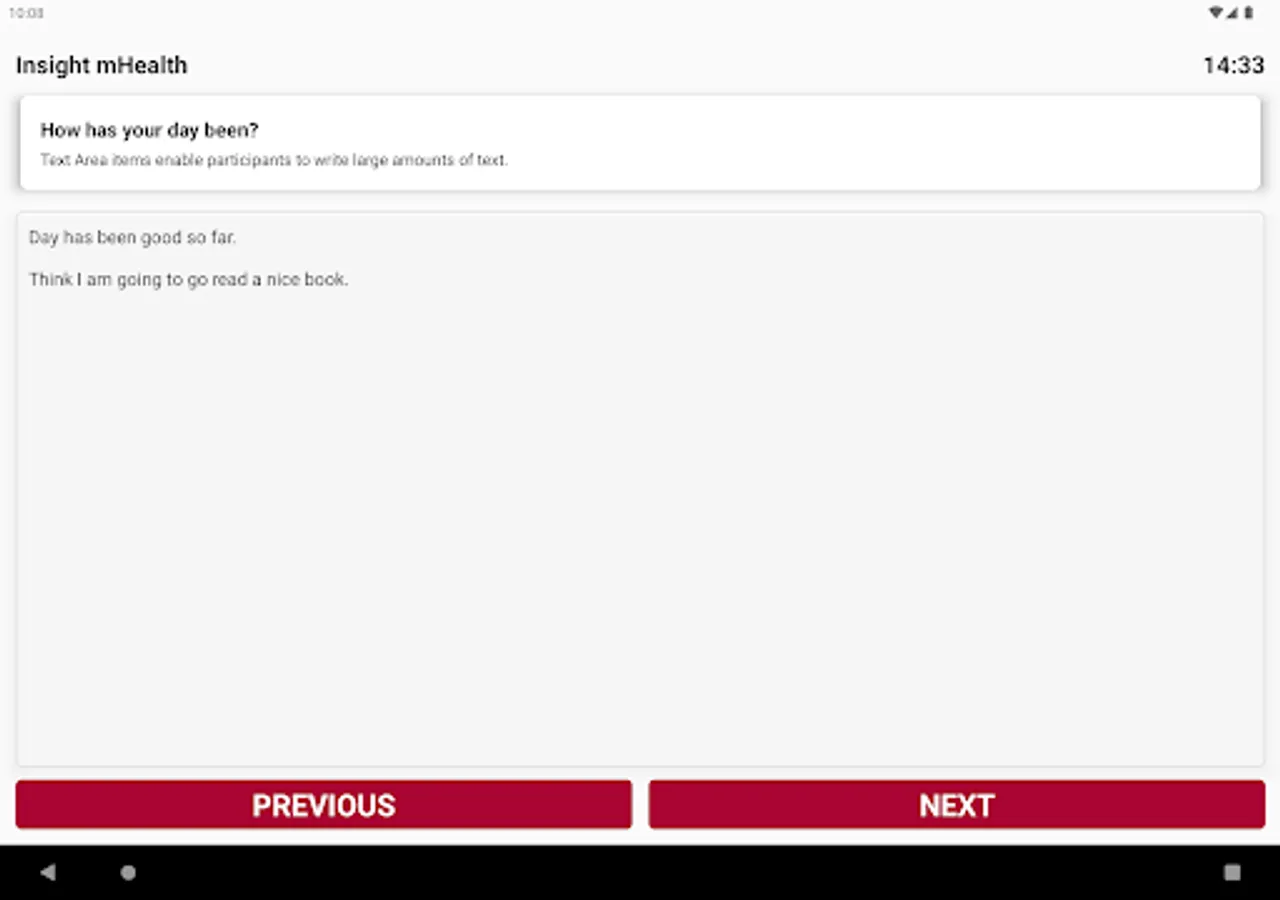 The Insight mHealth Platform is a system for administering EMA (Ecological Momentary Assessment) studies on mobile devices.