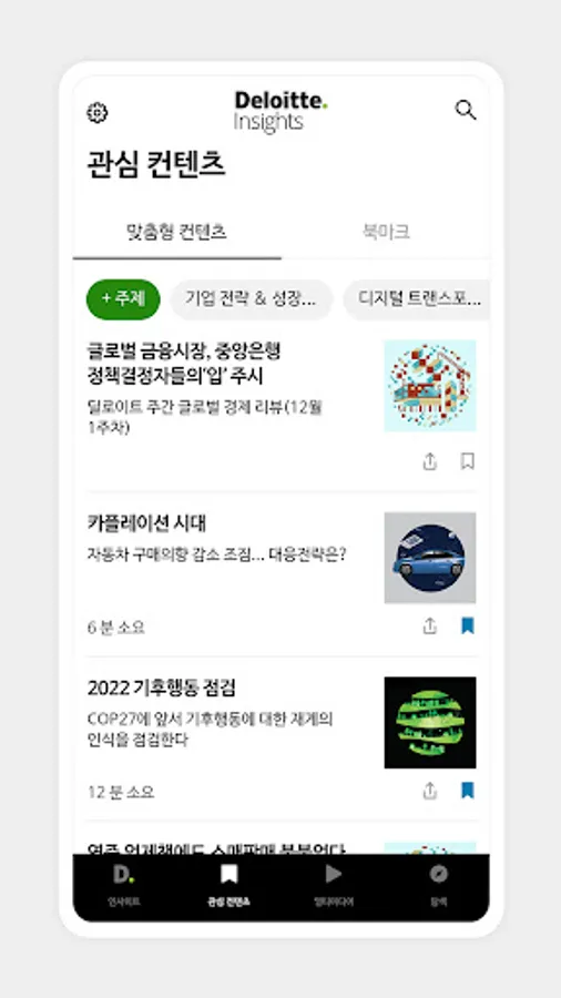 ■ Setting a topic of interest: After setting the industry and topic of interest, browse the contents by topic