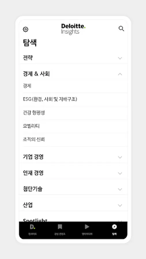 The Deloitte Insight app is an Insight knowledge platform that serves as a strategic think tank for the Deloitte Group, the global No.1 accounting and consulting expert group, and aims to help partners create innovation.