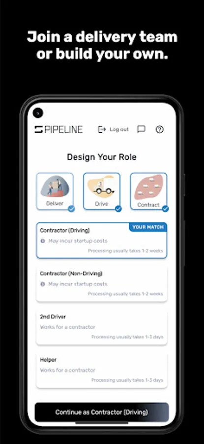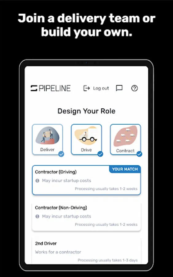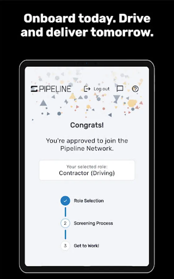 The Pipeline App offers drivers, helpers, and independent contractors a fast and easy way to onboard quickly. Snap a badge photo, share your ID cards, connect with your team, and remain compliant with the ease of Pipeline. Welcome to the app that delivers.
