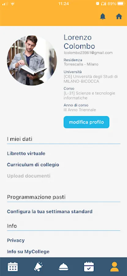 MyCollege is the app that allows everyone (residents or not) to take maximum advantage of the opportunities offered Rui attending colleges throughout Italy. Here is the schedule of JUMP courses and all the educational-cultural-sports-voluntary initiatives you can participate, with the ability to give your feedback with a touch; The lunches register to report your presence / absence, if you need a tray or the mythical bag; the management of your personal interviews tutoring / coaching in which you give a sprint to your university career; immediacy in contact others for a visit to the museum or to a game of football, or asking for a gear-shift in exchange ... So, finally worldwide residence in your hand!