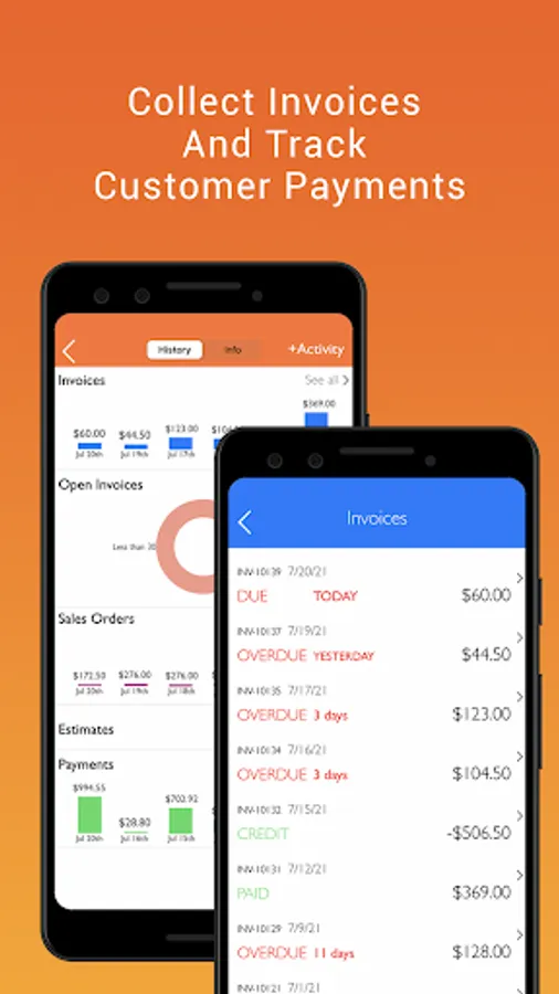 With access to product inventory and pricing information, your sales team can quickly and efficiently create estimates, sales orders and invoices in the field. Connect a mobile device to a mobile printer for proof of delivery.