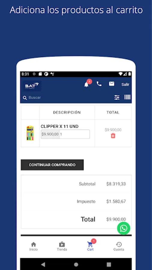 The application allows shopkeepers to make purchases online, pay their bills and view the products or promotions available.