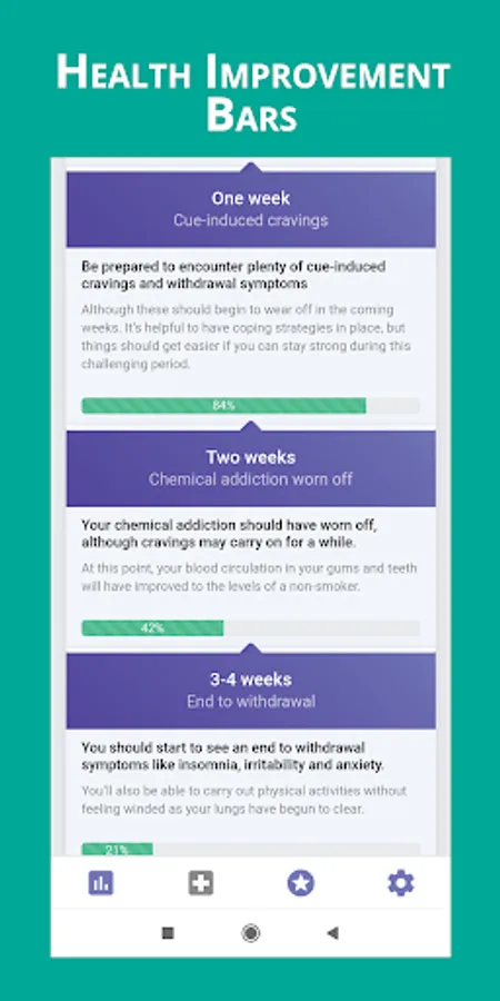 - Shows benefits of quitting.