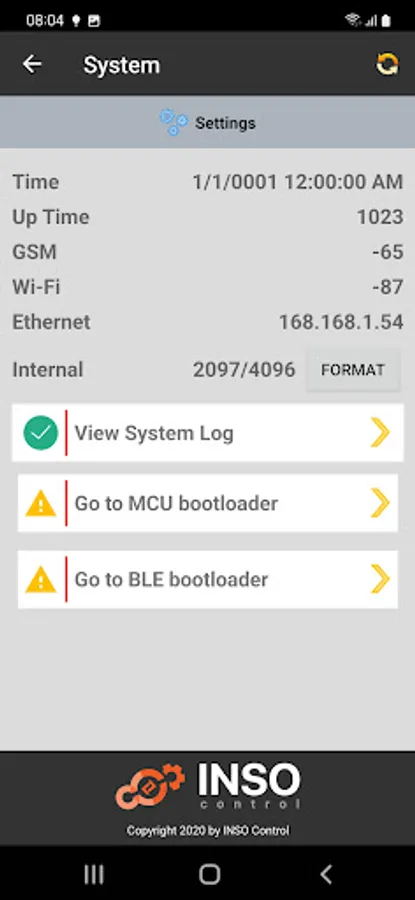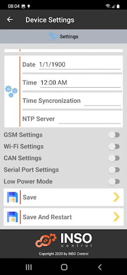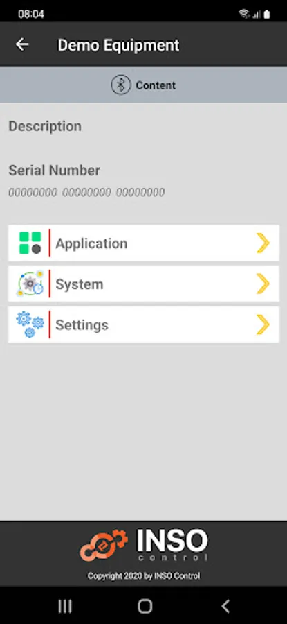 This app is used to setup the configuration of the equipment produced by INSO Control. The app allows to change parameter values of the applications, set the date/time, etc. The access is protected by a pin code which is user defined.