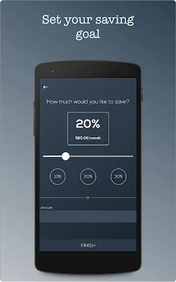 You will have to set the amount that you want to save each month. Only then the App will be able to start setting everything for you. When provided that you can start to save money checking main dashboard.
