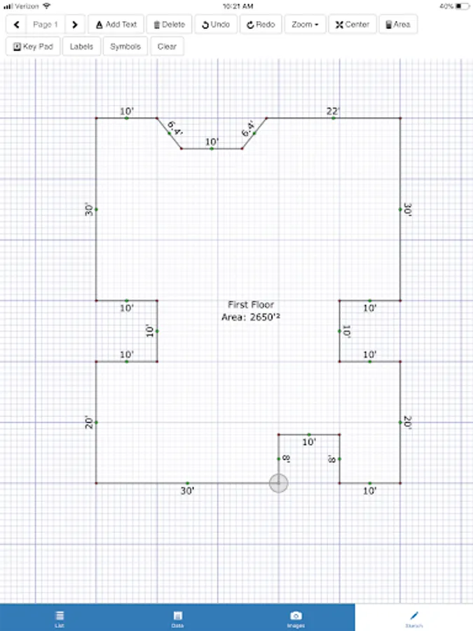 Create detailed sketches in the field by tapping with your fingertip. Quickly define lengths, angles, arcs and areas. Pinch to zoom and pan, then tap to drop in symbols and labels.