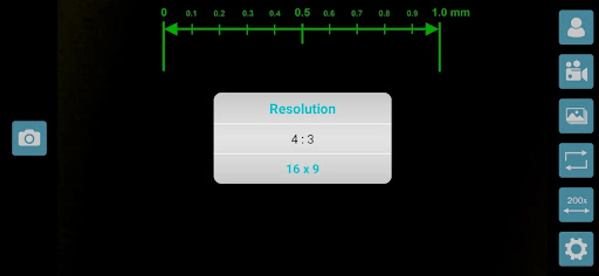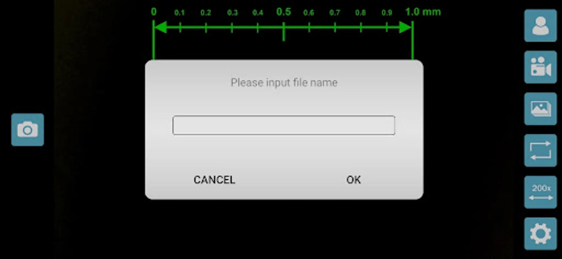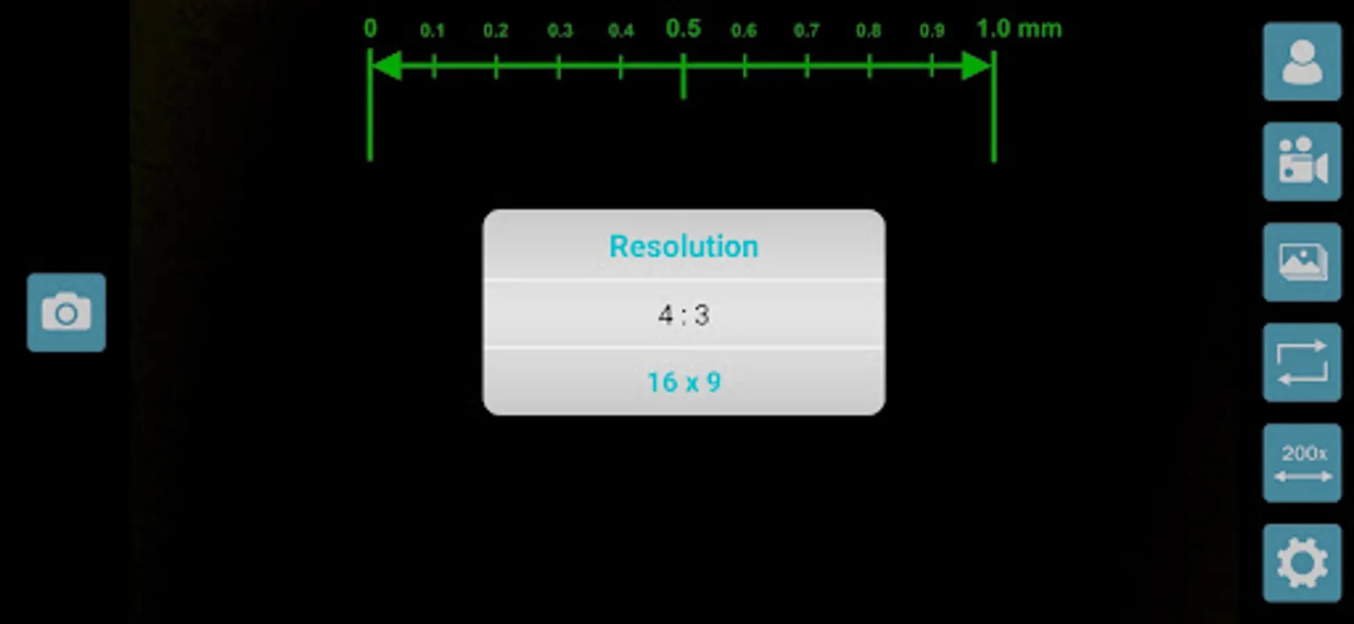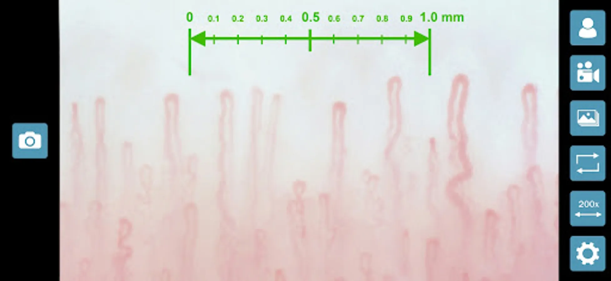Overlay of millimetre scale gauge for 200x and 50x magnifications