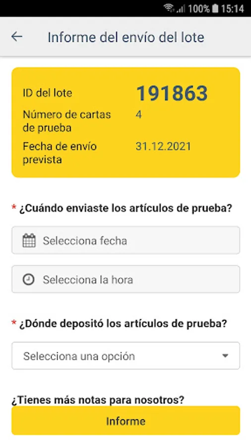 Senders can also report time and location directly in this app.