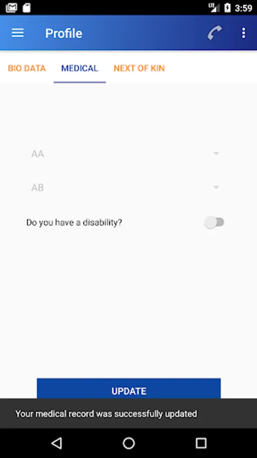 Note: You can trigger an emergency report by tapping the call icon on the top right corner of the app or via the DigiSecure NFC card.