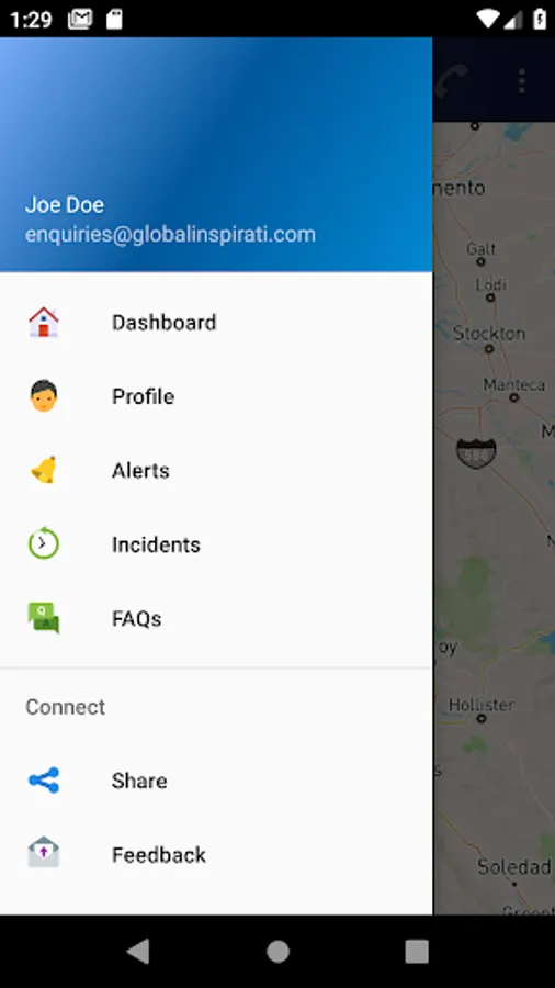 You can select an emergency type while your next-of-kin and the relevant agency gets notified. All incidents that occurred in your city within the last 48 hours can also be seen on the dashboard.