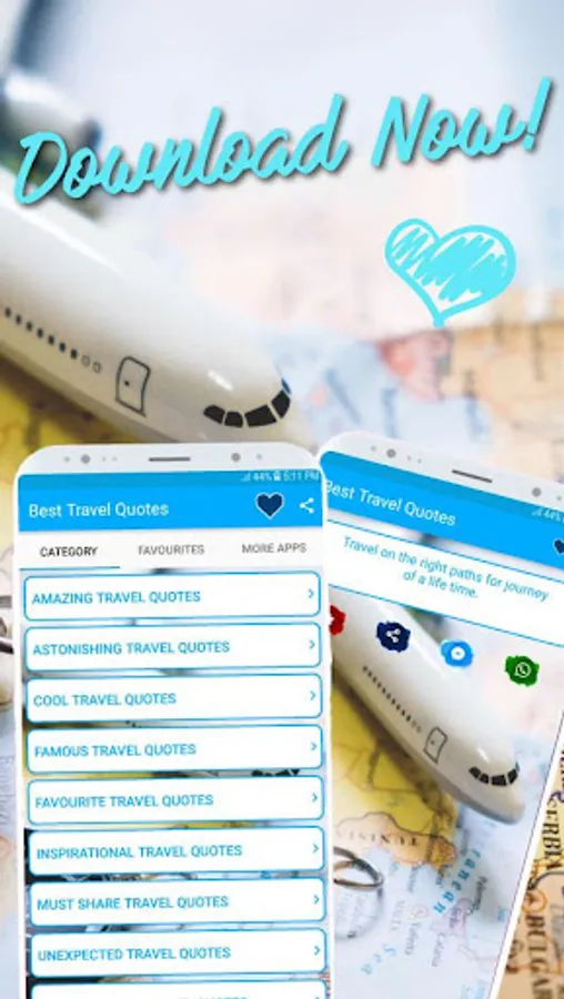 This best Travel Quotes app helps you to get inspired with many beautiful and meaningful travel quotes. Sometimes you are reluctant to take on an adventure and explore new things and meet new people. These best inspirational travel quotes will give you a nice push for you. With these best Travel Quotes, it will ease you and give you many inspirational travel quotes to share with your family and friends on many social apps including Facebook, Twitter and Whatsapp. Let them get inspired and motivated too.