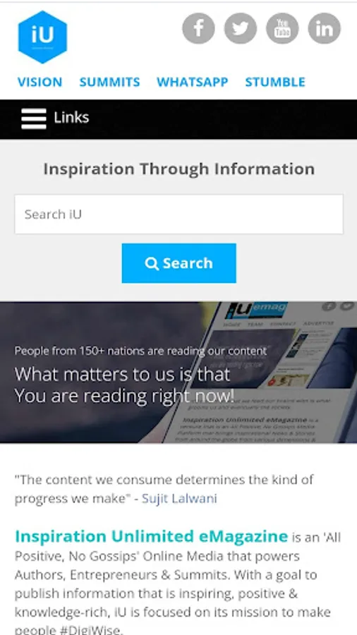 Inspiration Unlimited (iU) works with a goal to publish information that is inspiring, positive & knowledge-rich.