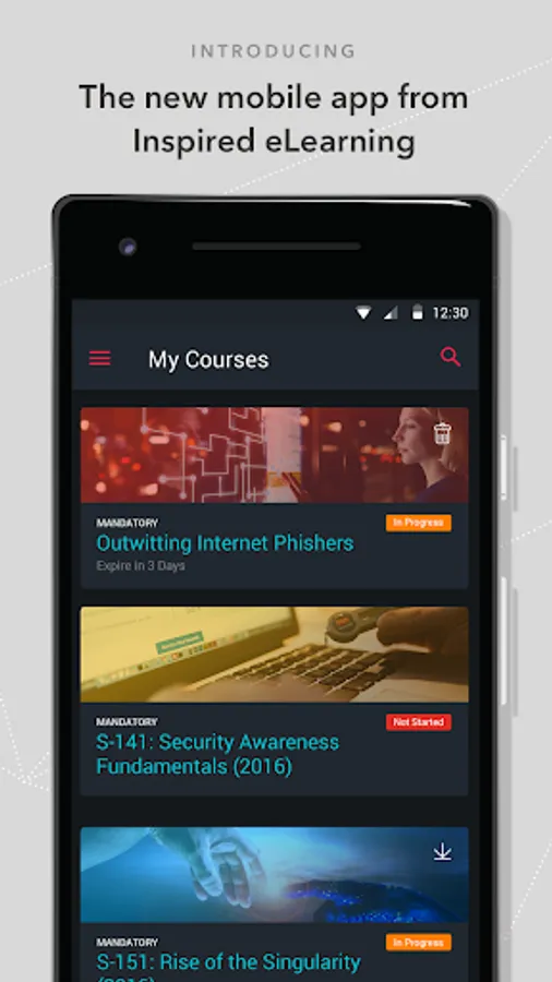 Introducing the first mobile app designed specifically for cybersecurity and compliance training. With the Inspired eLearning mobile app, team members throughout your organization can access our award-winning training on their preferred devices. Available at no charge to existing customers, the app provides users with the same great courses they’d get at their desktop, with the added flexibility that comes with total portability. Industry-leading security has never been more convenient.