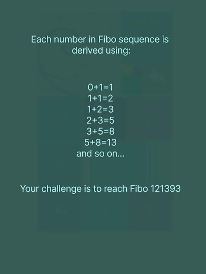 Example: 1+1=2, 1+2=3, 2+3=5 ... and so on, When the highest tile is created, the player wins.