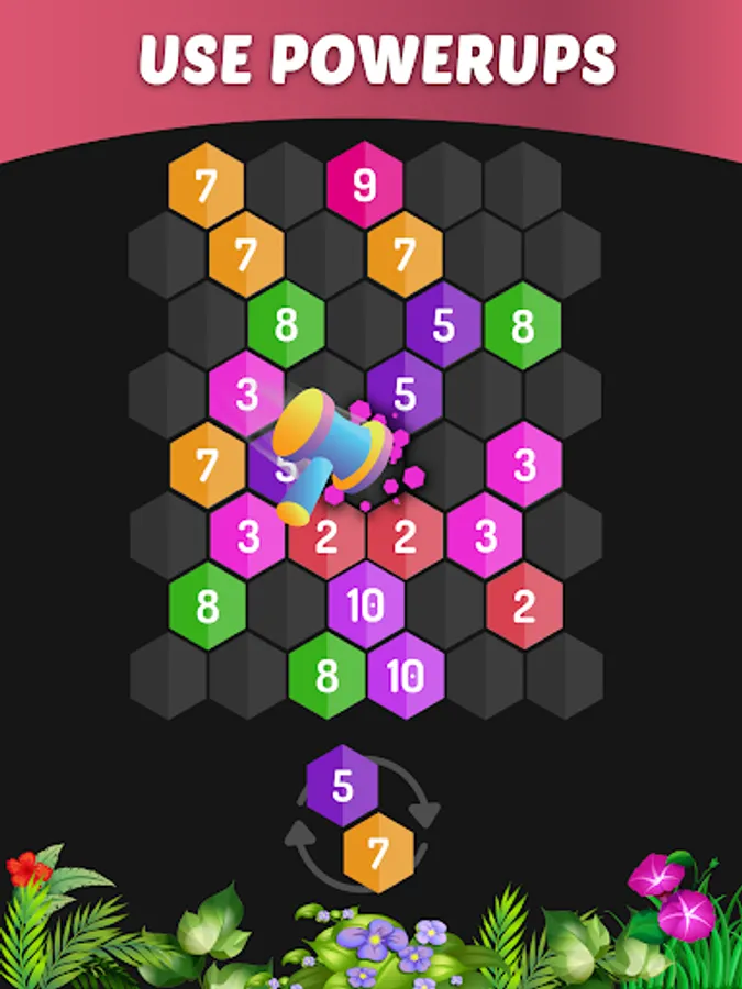 - Smooth & simple controls so that you can merge hexagon number blocks easily.