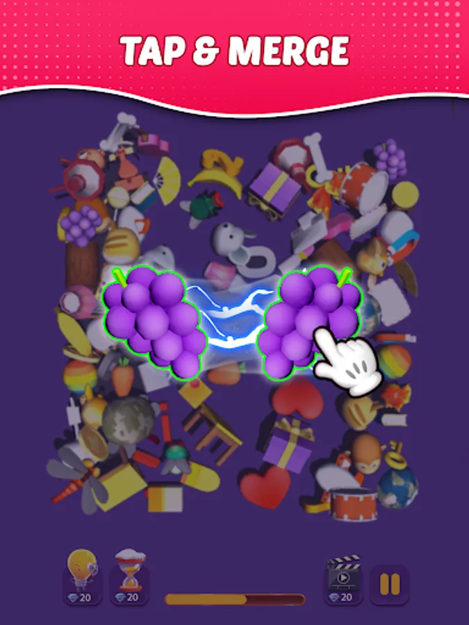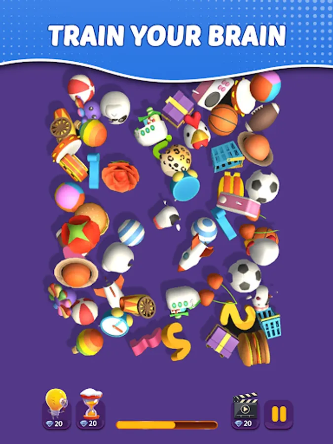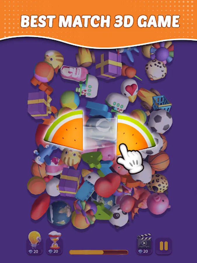 You just need to find, tap and match identical 3D objects to make them pop among a tangled mess. When all 3D objects on the ground are collected before the time is over, you can pass the current level! π