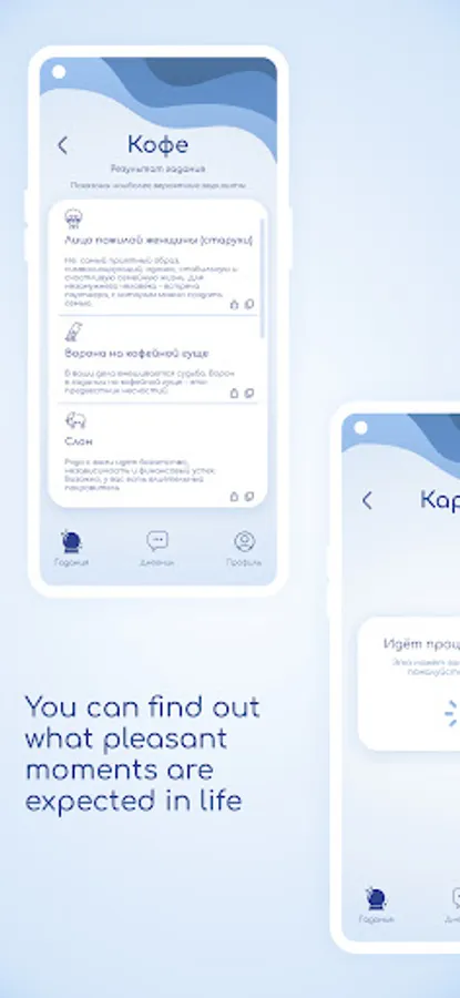 Upload your photo of a cup of coffee or a laid out combination of cards and in 1 minute you will receive your personal fortune telling and its detailed description in detail.