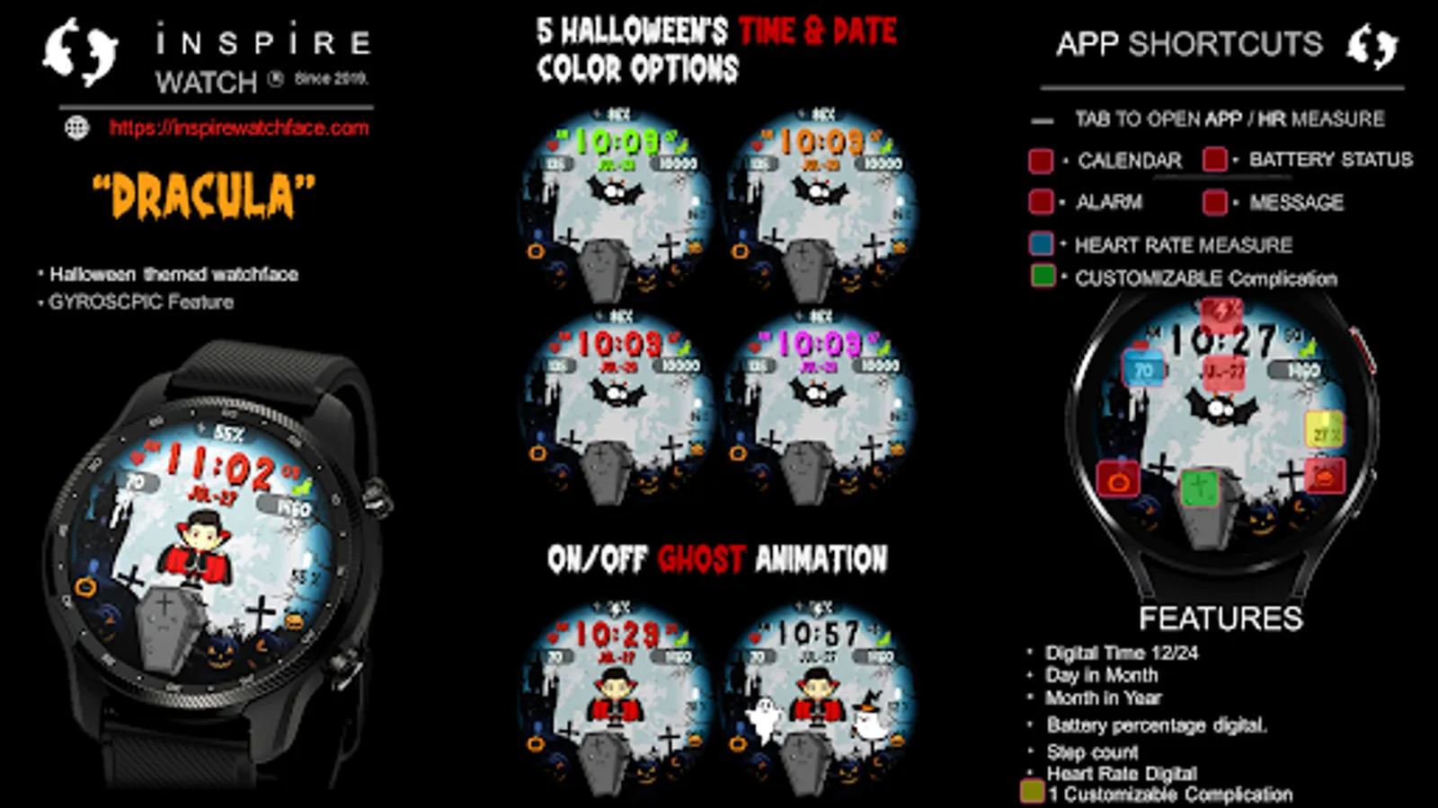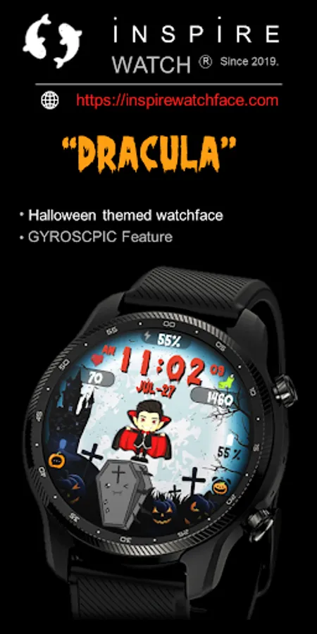 My name is Milos Fedak I would like wish scary all Halloween (All Hallowsâ Eve or All Hallows day) to everyone. In case you have questions before or after purchasing this Halloween Vampire â Dracula themed watch-face you can contact me đ inspirewatch@gmail.com or web page: https://inspirewatchface.com