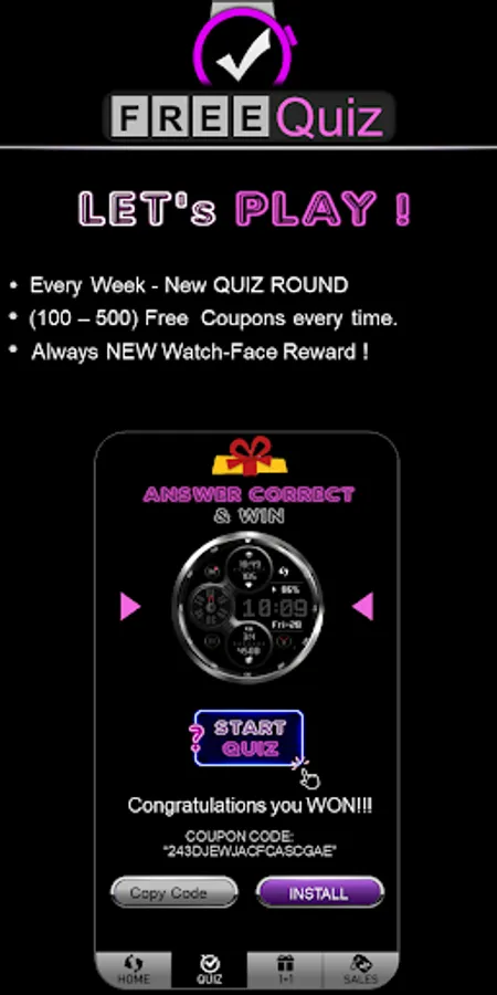 • Answer minimum correct questions and WIN Free coupon for pre-selected Watch-face.