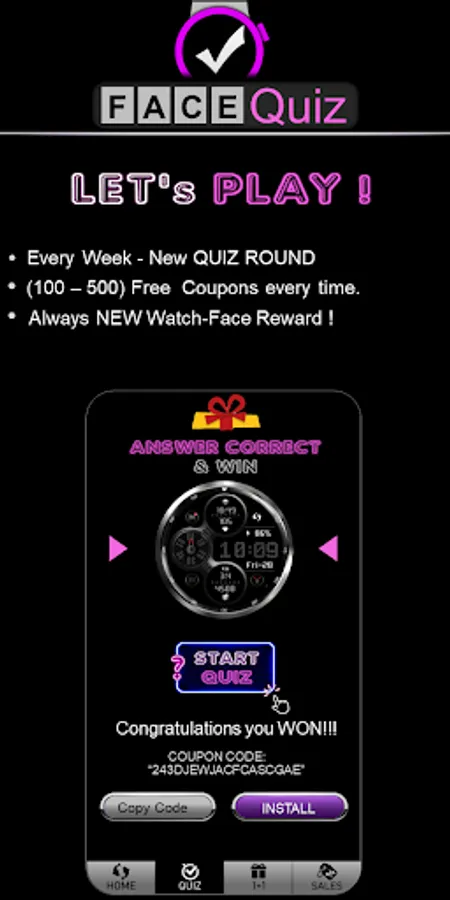FACEQuiz is an Quiz game App. Test your knowledge about Smart Watch, Watch-faces, Designers… Answer Correct and WIN Free coupon Code