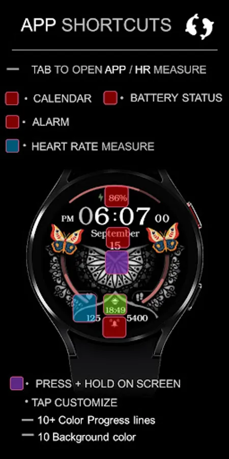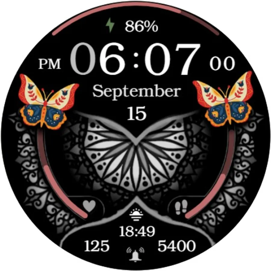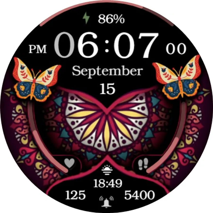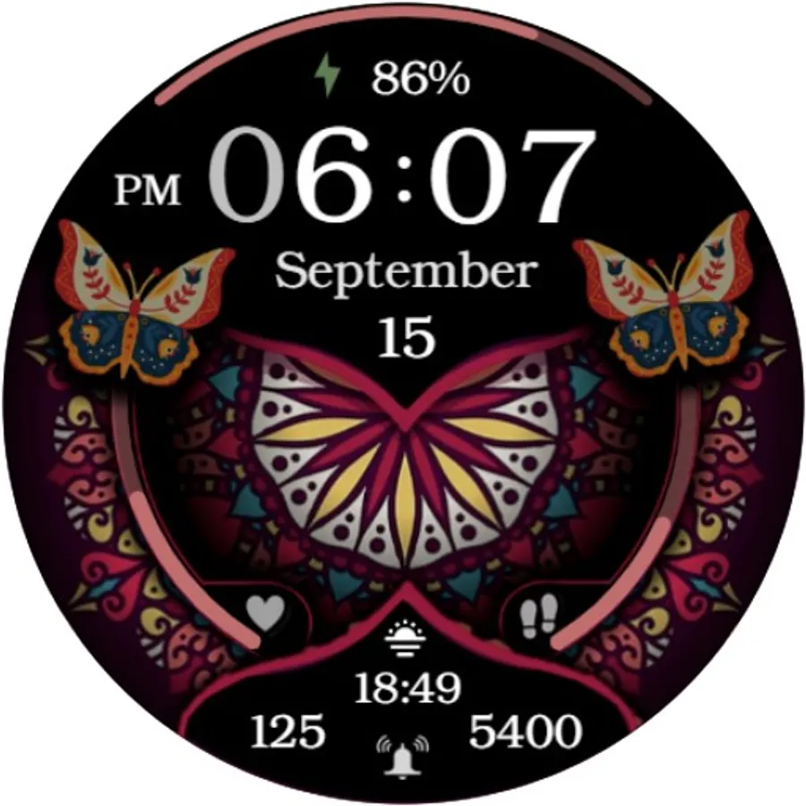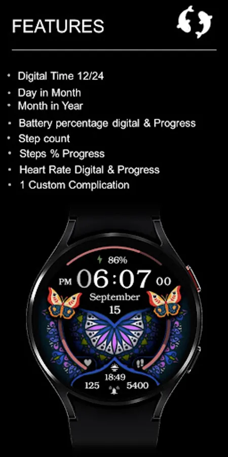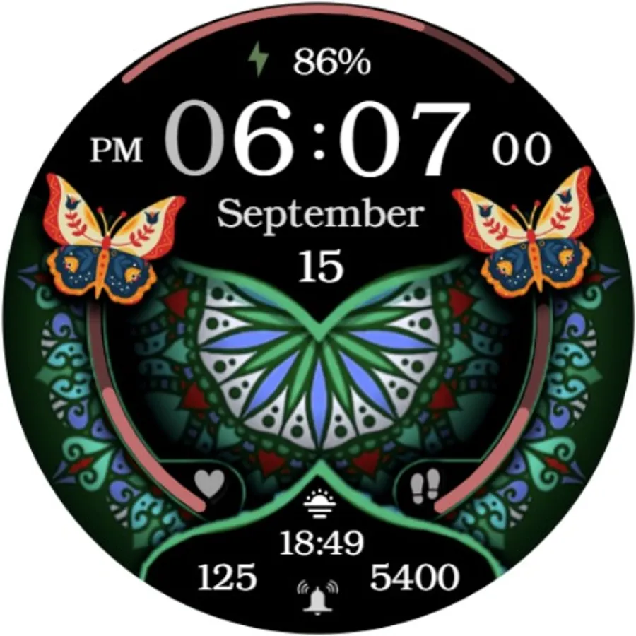 ⌚︎ On this beautiful Hispanic themed watch-face you will see all important information like Digital time 12-24h time format, Date information, Battery percentage Steps and Heart rate.