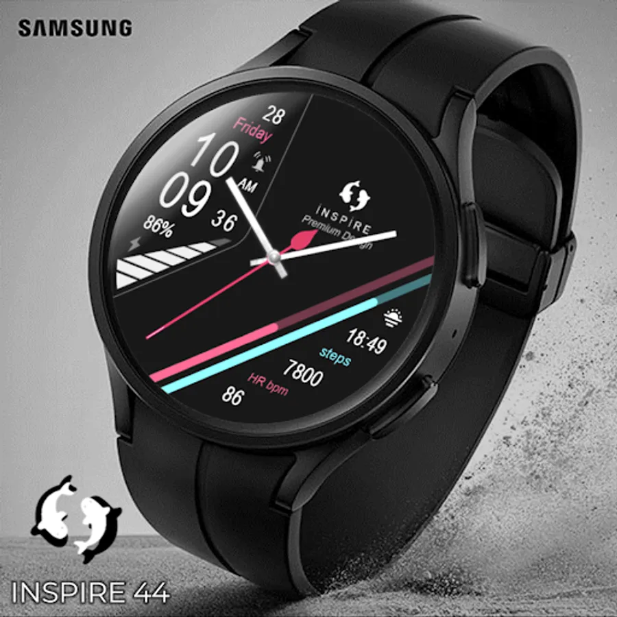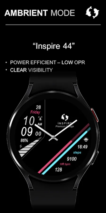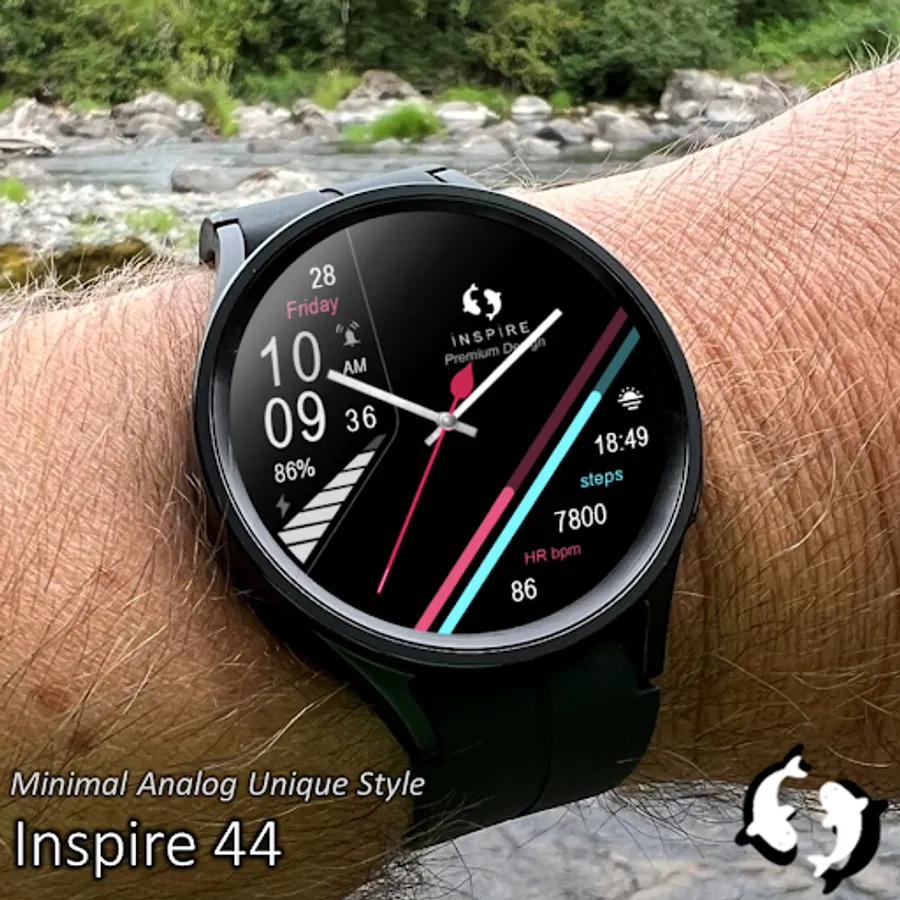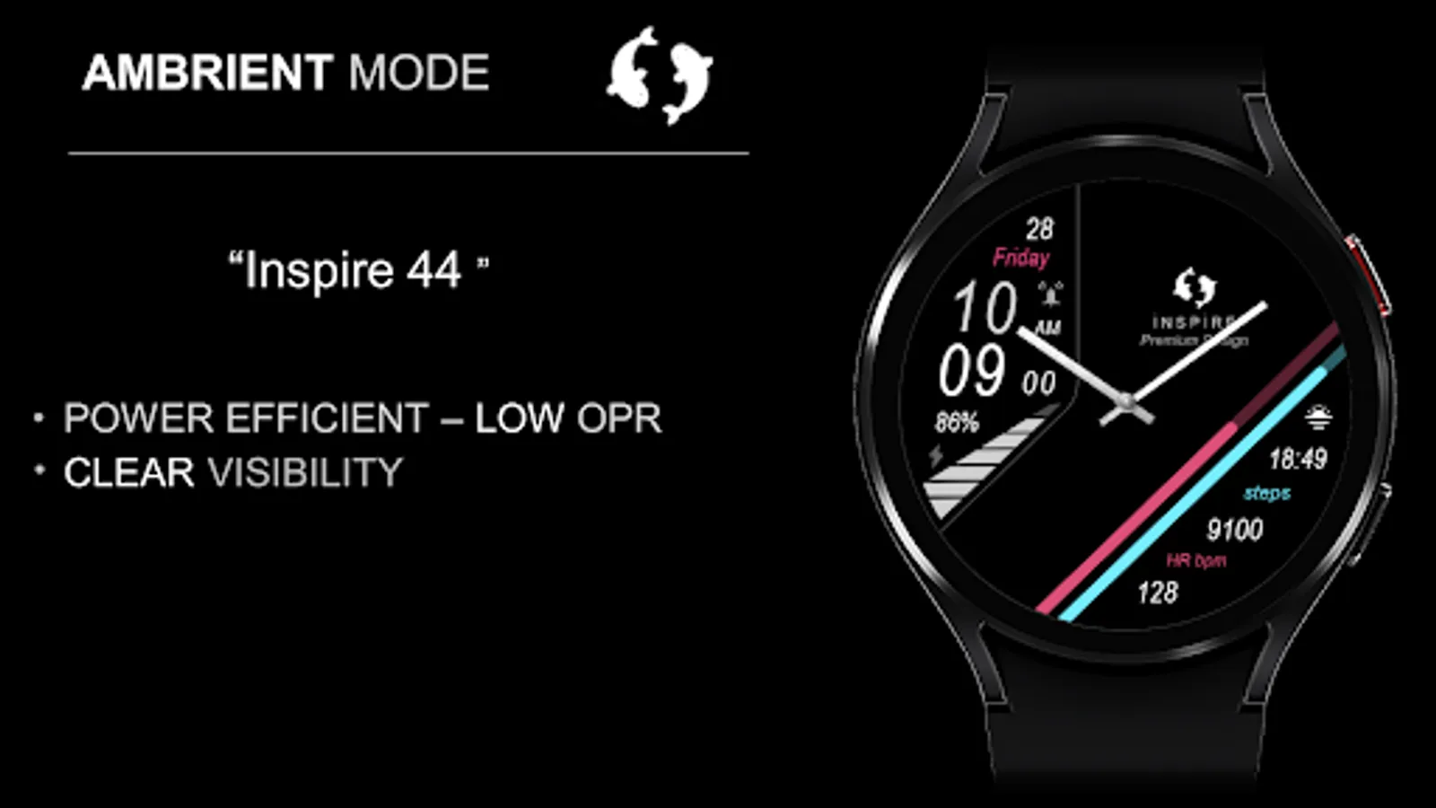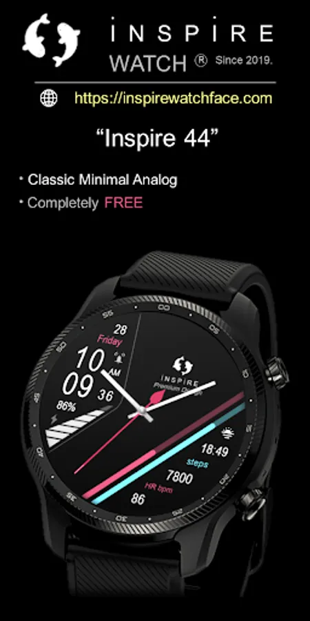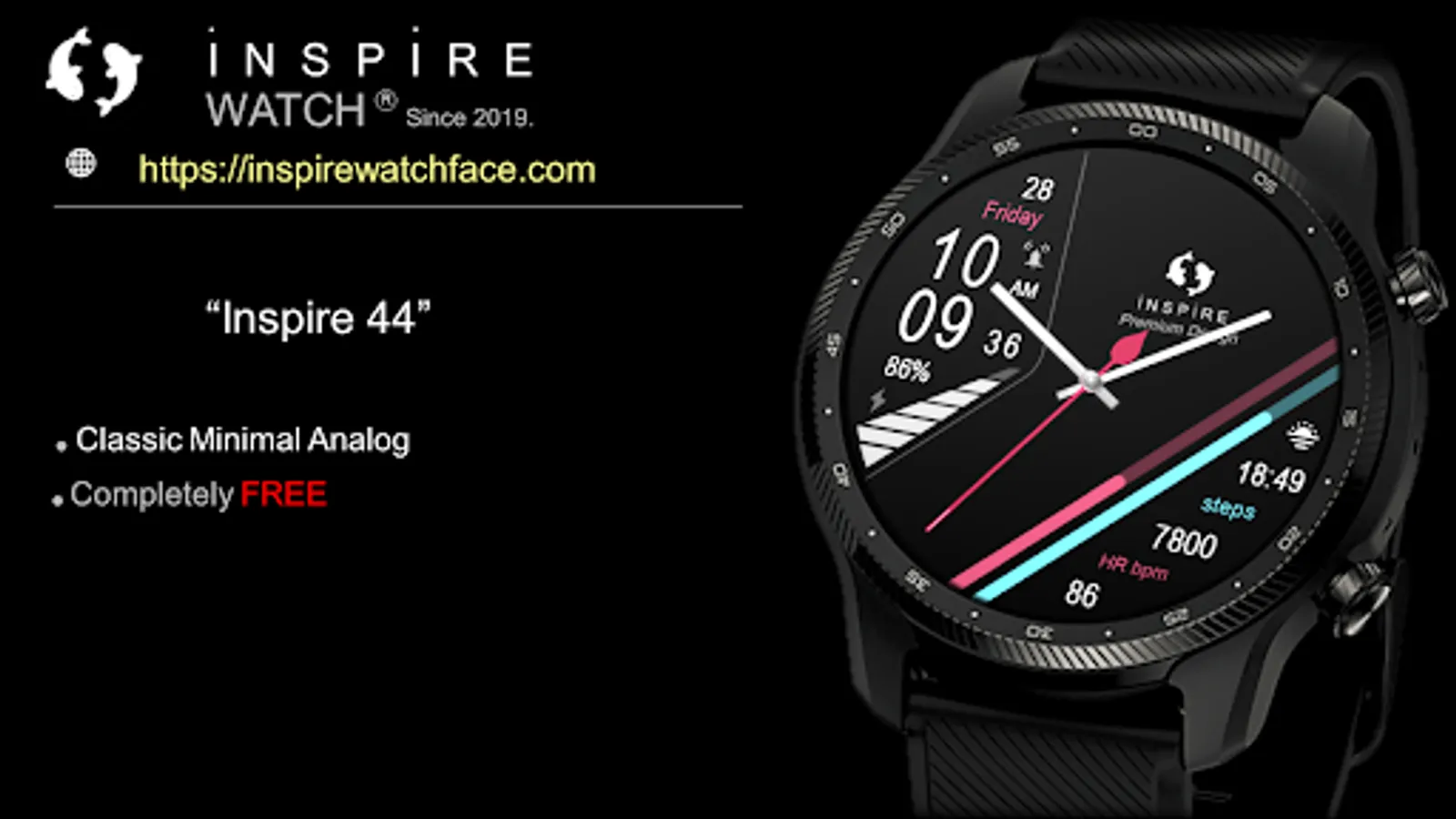 FREE Watch Face Inspire 44 is Minimal Analog Watch Face with Black Background - power effeciently with low OPR below 10%!