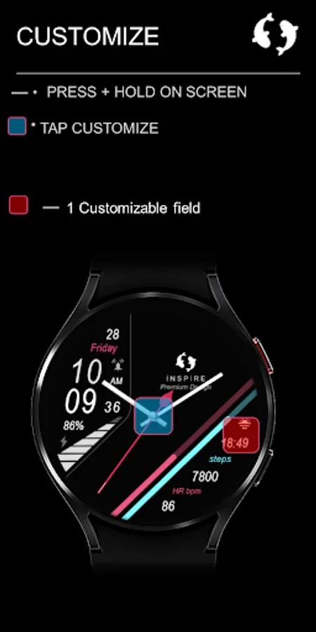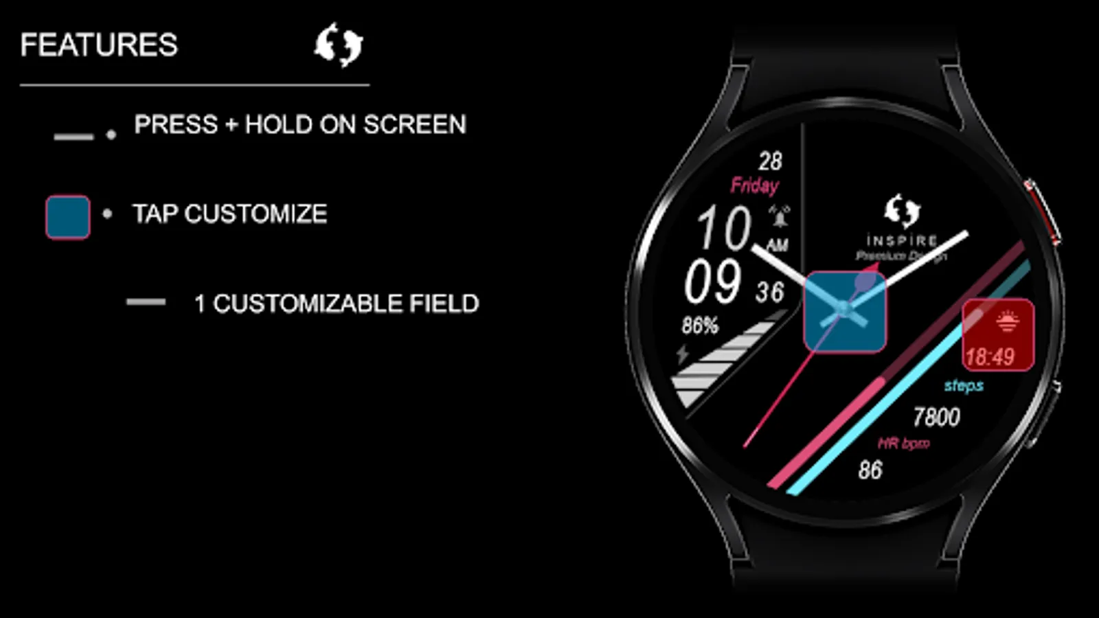 - 1+ Customizable field - you can choose feature from wear os option list.