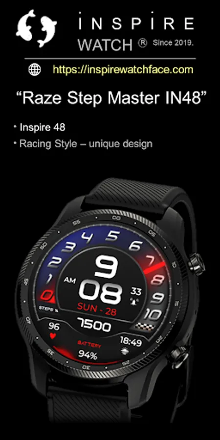 Inspire Watch introducing Digital Sport & Racing Style watch face with sharp graphic and unique Design.