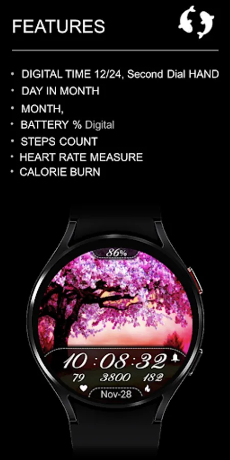 This digital Watch- face Contain all feature you need for daily live as Digital Time, Battery percentage, Steps count, Heart rate measure and Day in month and Month!