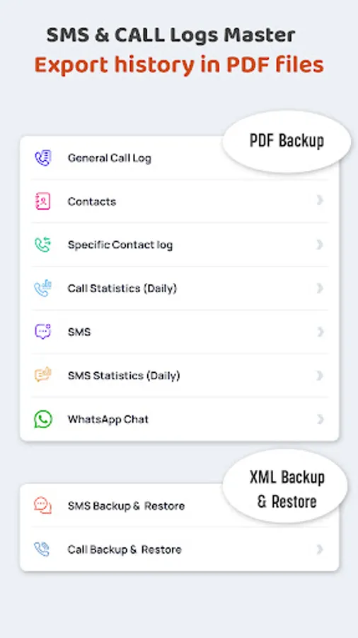 SMS & CALL LOGS BACKUP MASTER FEATURES :