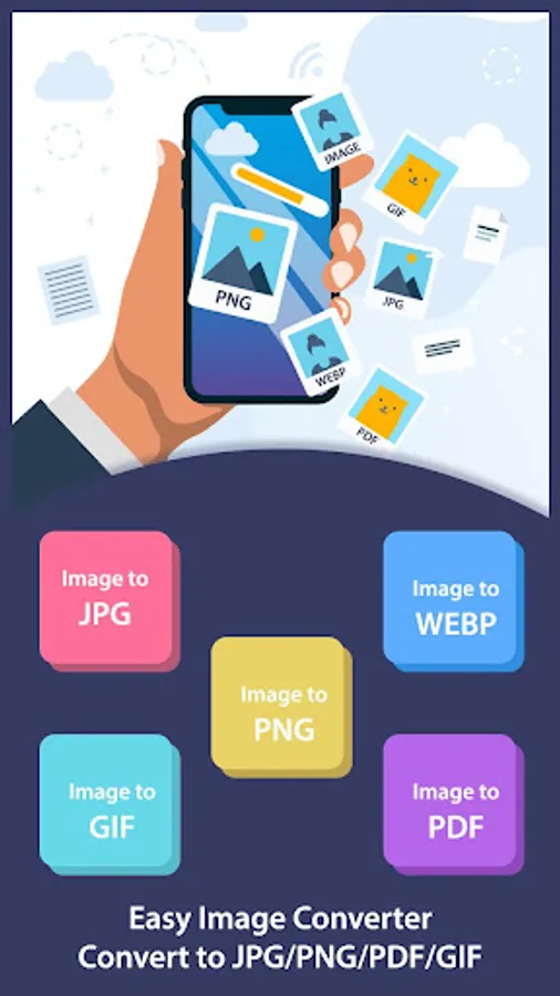 Easy Image Converter - Convert to JPG/PNG/PDF/GIF app supports file sharing feature. Send files to easily in different ways like email, social media App to anyone or and save it to your Cloud Drive for backup.