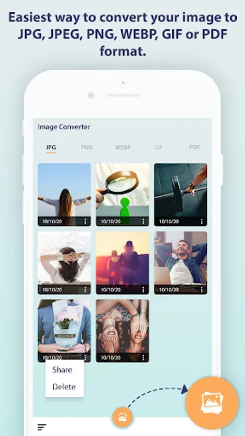 *Manage all converted images directly from gallery, you can later share or delete converted images.