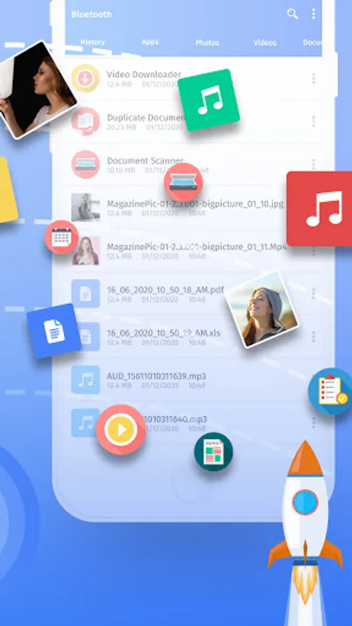 - Share Images, Videos, Audios, Documents file share easily via Bluetooth.