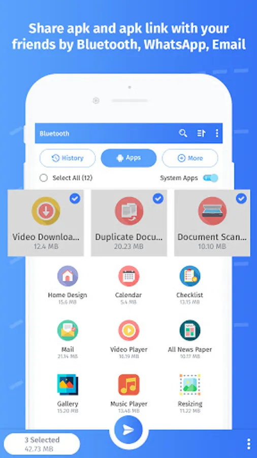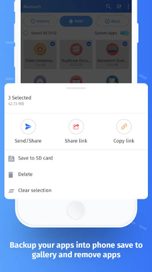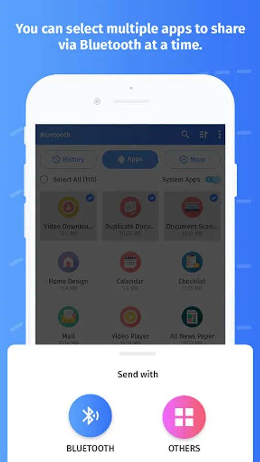 - Use Bluetooth file transfer to easily save apps to phone and transfer files from one phone to another phone. Bluetooth file sender also enables you to send apk, share apps with your friends via Bluetooth.
