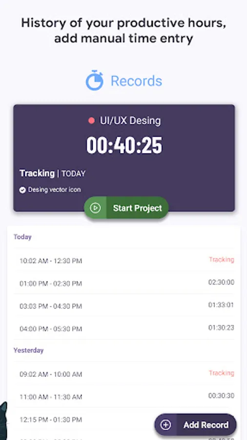 Time Tracker – Track Productive Hours app offers below useful feature :
