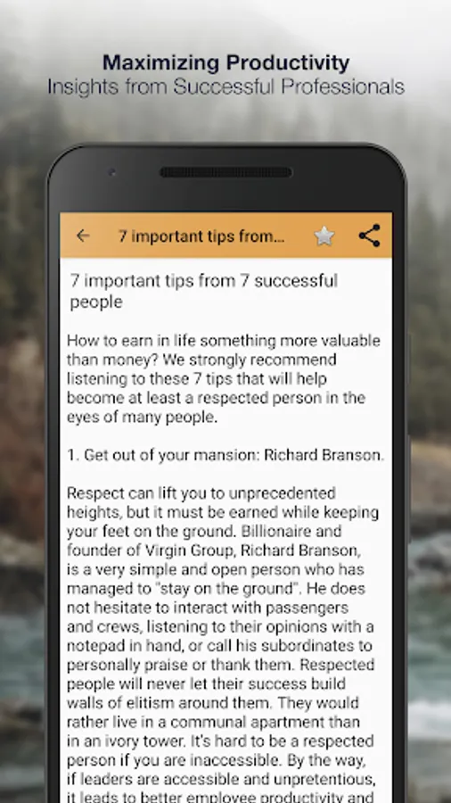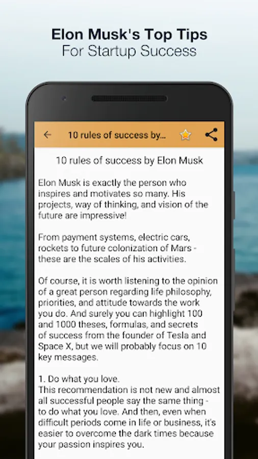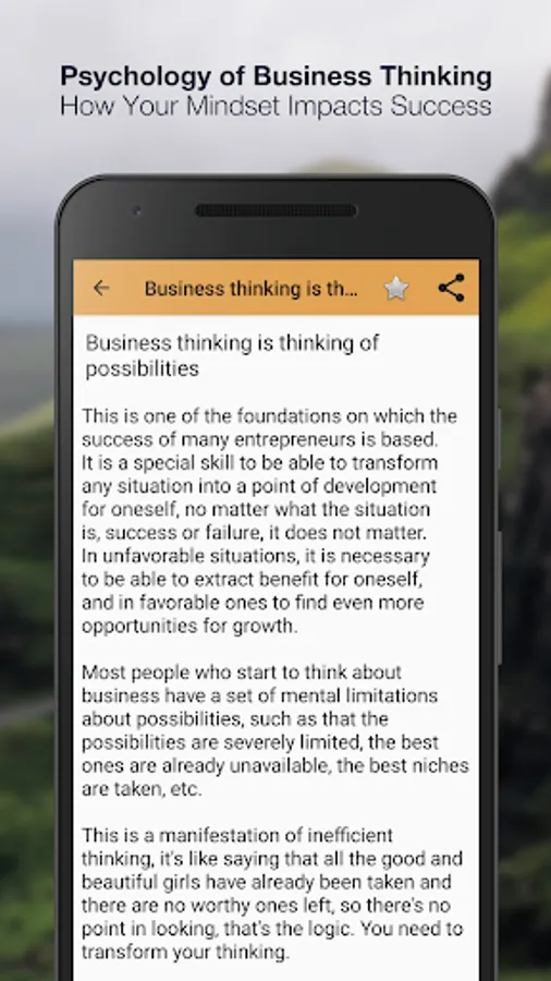 The application will help you delve into the topic of self-development for entrepreneurs, uncover real leadership qualities, and provide guidance on team management. It covers various aspects, including motivation, productivity, time management, investments, passive income, and other useful techniques and practices for building a successful business.