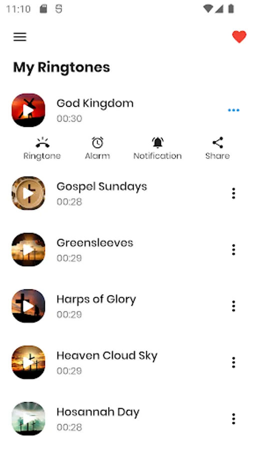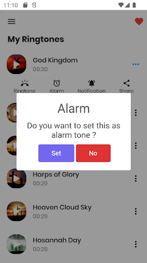 - Press and hold on the desired sound to set it as your ringtone, alarm sound, or notification sound