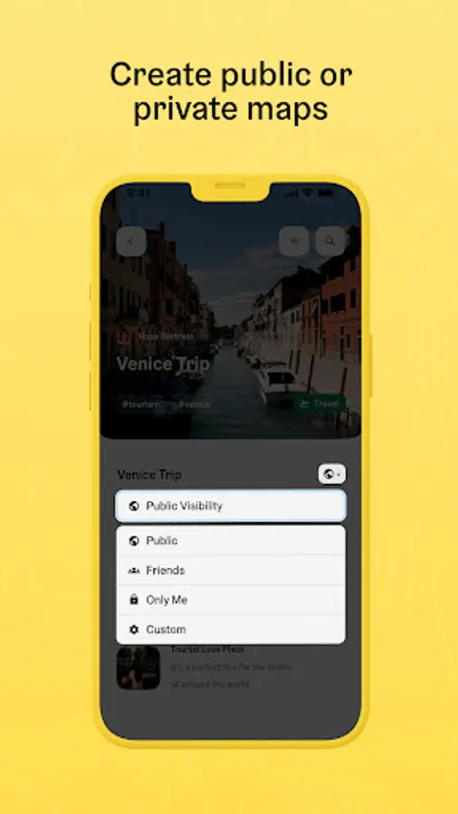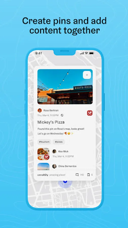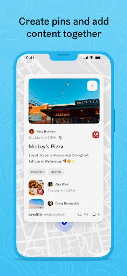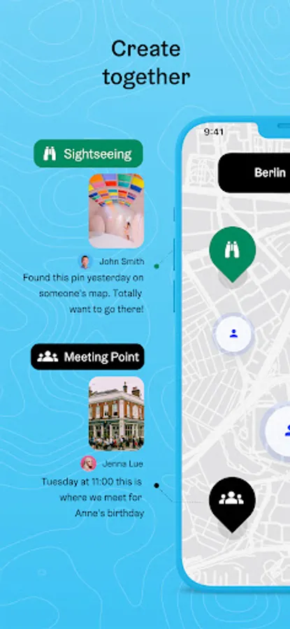 Geographically share social events. Connect with friends, meet at special places, share experiences.