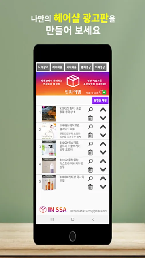 Insa's Item provides a function that allows the hair shop owner to download and repeat the desired advertisement for free. Try promoting retail products using Insa's items! It will help you a lot in increasing your hair salon sales.