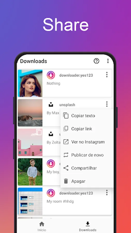 You can also REPOST with captions and hashtags to get more followers or SHARE to your friends!
