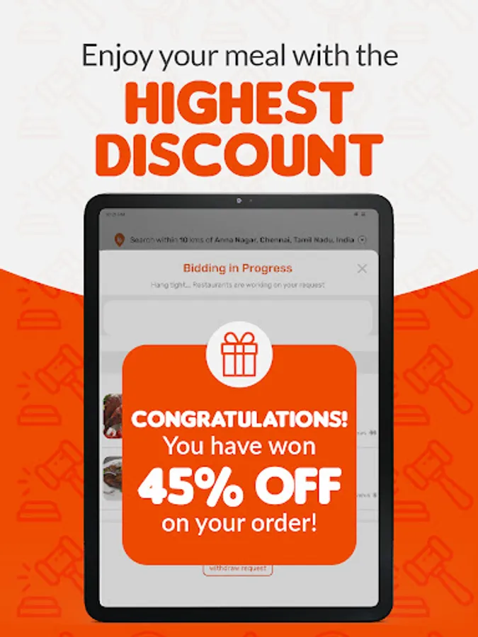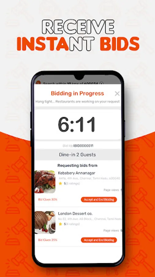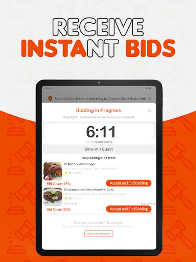 While looking for discounts in multiple apps could be a hassle and time-consuming, finding the best of all the discounts from trending restaurants in the city in one app can make life easier. Instabids does not let you settle for flat deals, Instead, it makes restaurants compete with each other by BIDDING to get you the HIGHEST Discounts to WIN you.