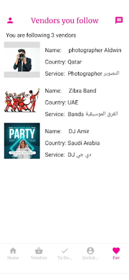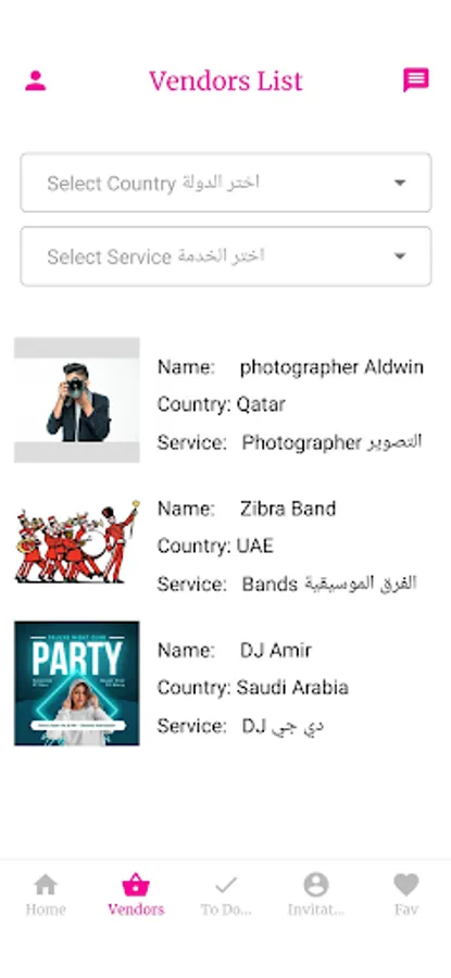وغيرها الكثير من الخدمات الرائعة حيث يجعل هذا التطبيق رحلة التخطيط لحفل سهلة وسريعة بدون مخاطر
