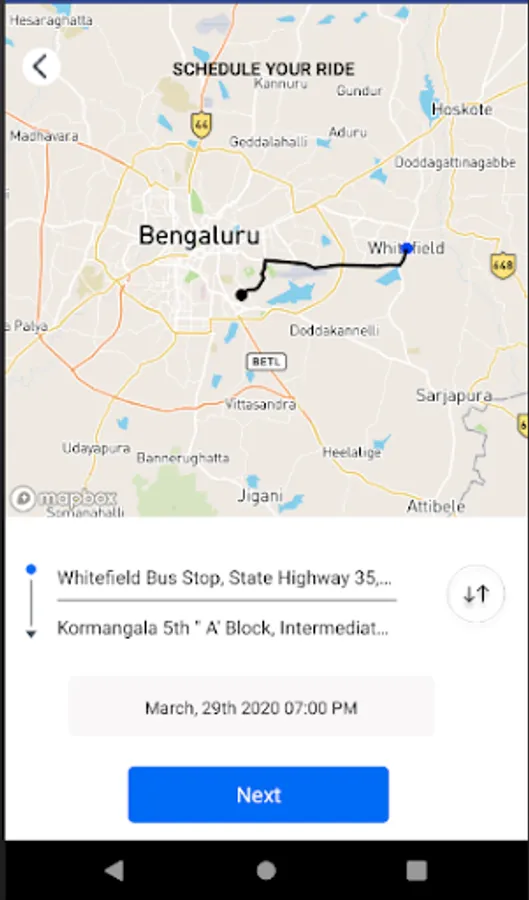 - Instacar is a taxi service offering safe, reliable, and quality rides to the airport at a reasonable cost. With Instacar you can schedule your ride in advance and expect a chauffeur-driven premium car to pick up from or drop you to Bangalore airport bang on time. In this time and day, safety is a major concern for any user. Particularly, when one has to catch a flight at odd hours.