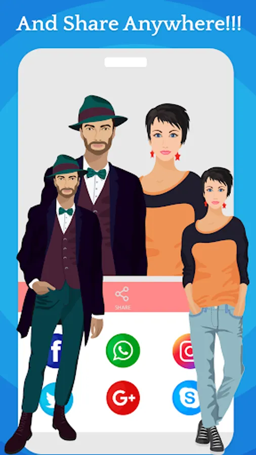 fashion cartoon avatar character maker app provide best platform to teenager for creating all modern characters like high school girl and boy, hipster, and cartoon of all professionals. Start creating avatar people and share to friends and family or make your dp.