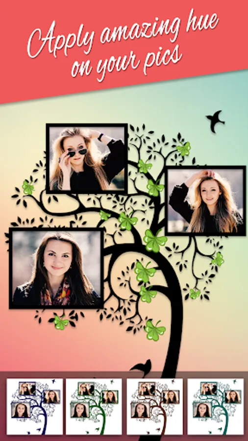 Tree Photo Frames is latest and creative family photo collage maker and photo editor for your photos! With this app you can combine ordinary photos into fabulous tree photo collage. Its help to syndicate all your family memory in one place with unique tree shape frames and adore via photo filters effects.