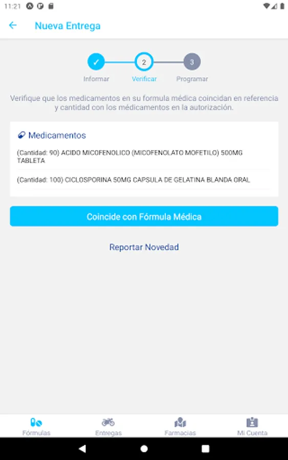 Through our application, Asisfarma IPS patients can schedule the delivery of their oral treatment medications at home or for collection at the pharmacy. Additionally, consult the nearest pharmacy and keep your contact information updated.
