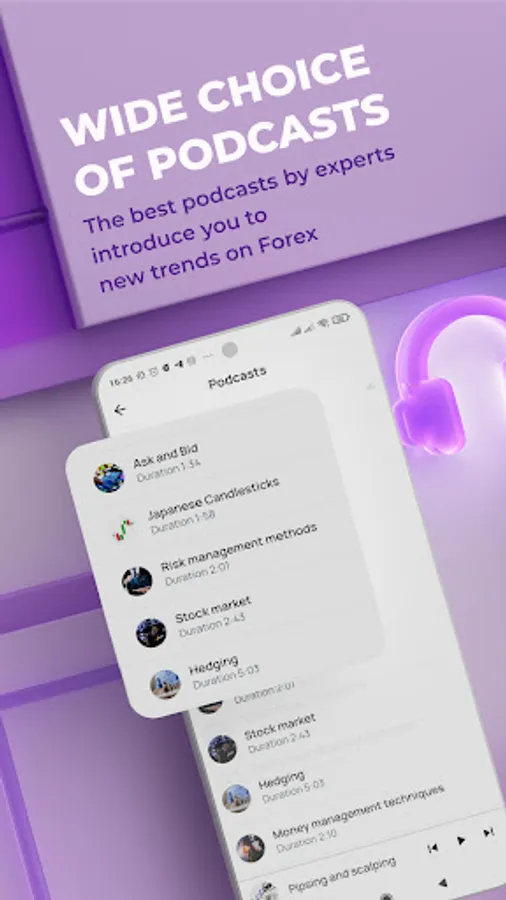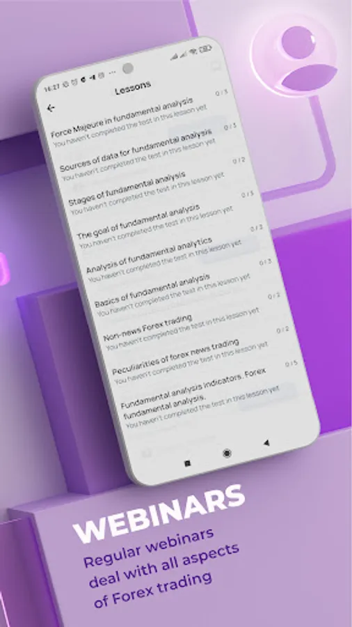 The Forex Courses app is not just a variety of lessons with simple navigation, a lot of practice, and maximum visualization. It also contains webinars, podcasts, and plenty of links to useful external sources.