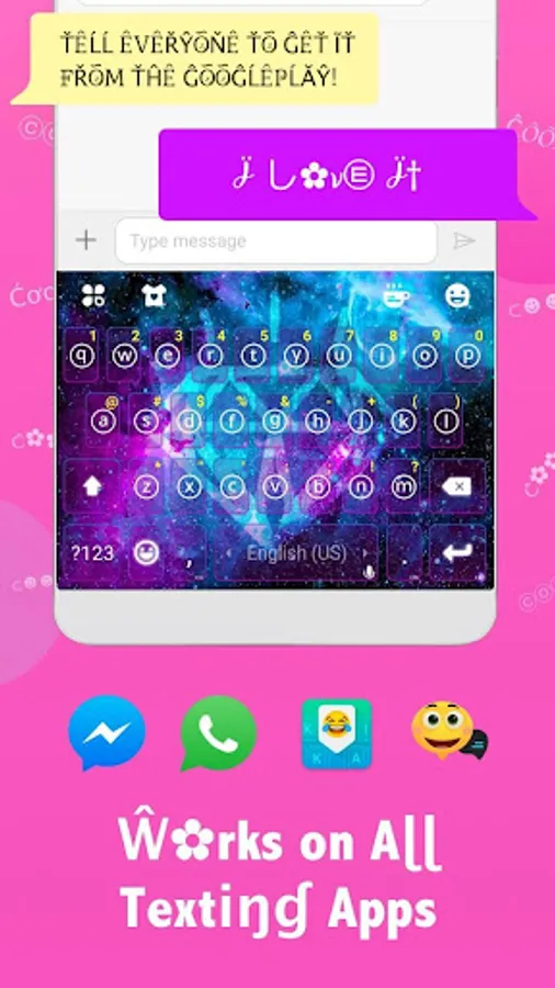 Change your font style on your chatting . Love , sweet and colorful as you wish. Be the first one to get it and surprise your friends with one of these amazing fonts ;) This will be your correct choice . Also, you will be able to enjoy your fonts for texting and messaging , however the typeface used on your device will be sent to people that you send a text message to . Hundreds of selected fonts style from handwritten fonts like : cute , darker , comic , galaxy , love , pink , sexy written , color fonts , clean fonts , candy fonts, etc . Different types of font style for phone are all available for you . You can find the perfect font styles that fits your taste . Change your messages fonts . Come and experience the custom font for you !